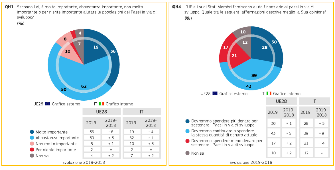 Il 74% degli italiani crede che la gli aiuti e la cooperazione sia un modo efficace per affrontare la migrazione irregolare (la percentuale è stabile rispetto all'anno precedente) e il 76 % si dice favorevole al sostegno e alla collaborazione dell'UE con l'Africa.