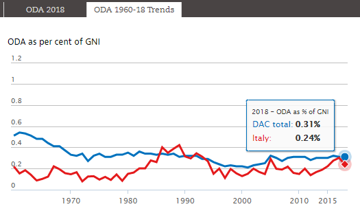 Con il voto di fiducia al Senato le reti di rappresentanza delle ONG devono quindi prende di un palese disimpegno politico da parte del governo. L’obiettivo sottoscritto a livello internazionale di investire, entro il 2030, lo 0,70% del PIL si allontana progressivamente. L’Italia aveva raggiunto faticosamente quota 0,30% nel 2017, una percentuale che è destinata a precipitare vicino allo 0,20%.
