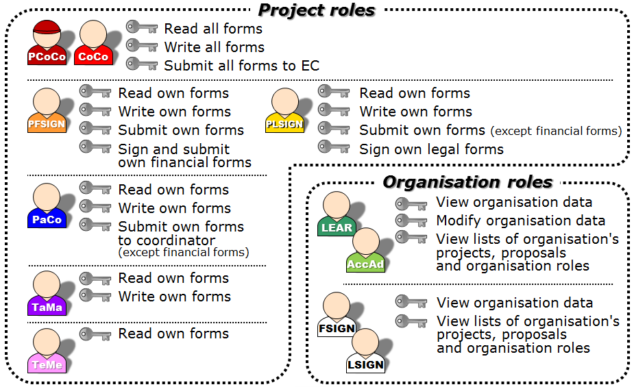 - FSIGN (Firmatario Finanziario) devono essere nominati per un'organizzazione dal LEAR o da un Account Administrator. Successivamente, possono essere assegnati a un particolare progetto da un coordinatore o da un contatto del partecipante. Un'organizzazione può avere un numero illimitato di FSIGN.