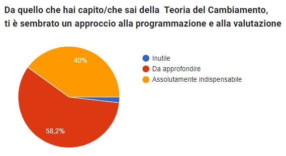 Nel 2017 le persone che avevano indicato “da approfondire” erano il 67,4%, mentre coloro che lo giudicavano assolutamente indispensabile erano il 32,6%. Possiamo leggere questa differenza probabilmente come un segnale del fatto che una complessiva maggiore conoscenza e utilizzo (si veda anche, a conferma, la domanda seguente) abbiano consolidato un giudizio positivo sulla ToC. Fatto per nulla scontato, peraltro.
