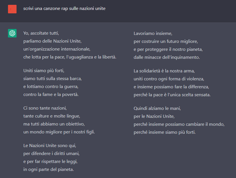 Al tempo stesso, dagli esempi sopra si possono intuire già alcuni limiti dello strumento. Nella risposta generata per richiamare il partner è evidente che dovrebbe essere maggiormente personalizzata per essere più efficace, anche se il testo è molto fedele all’istruzione ricevuta. È chiaro quindi uno dei punti più importanti per l’utilizzo del software: le risposte prodotte devono essere interpretate come tracce, come un punto di partenza. Come vedremo nel tutorial, spesso sono un ottimo punto di partenza per diverse possibili applicazioni, ma è bene sempre ricordare che si tratta di testi generati automaticamente e quindi da utilizzare per ulteriori elaborazioni o comunque per una valutazione umana che possa eventualmente limarle, adattarle o, alcune volte, correggerle. ChatGPT è potente ma non è perfetto. Diciamolo, davanti a queste prestazioni, qualche limite in fondo ci consola e, anzi, rende il tutto forse ancora più vero. Potremmo dire: più umano. (Articolo di Paolo Palmerini – Gnucoop)