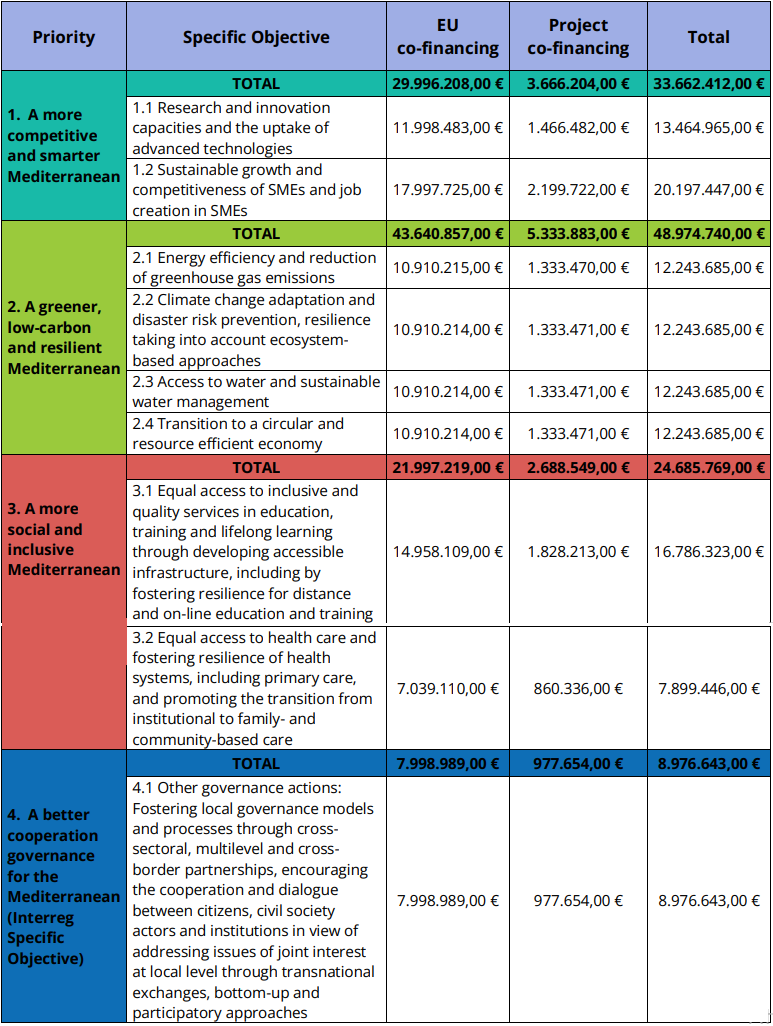 Il bando mira a finanziare progetti di cooperazione che favoriscano lo sviluppo sostenibile e inclusivo nel Mediterraneo. Le principali aree di interesse includono innovazione, crescita delle PMI, energia rinnovabile, acqua, economia circolare, adattamento climatico, istruzione, sanità e governance locale.
