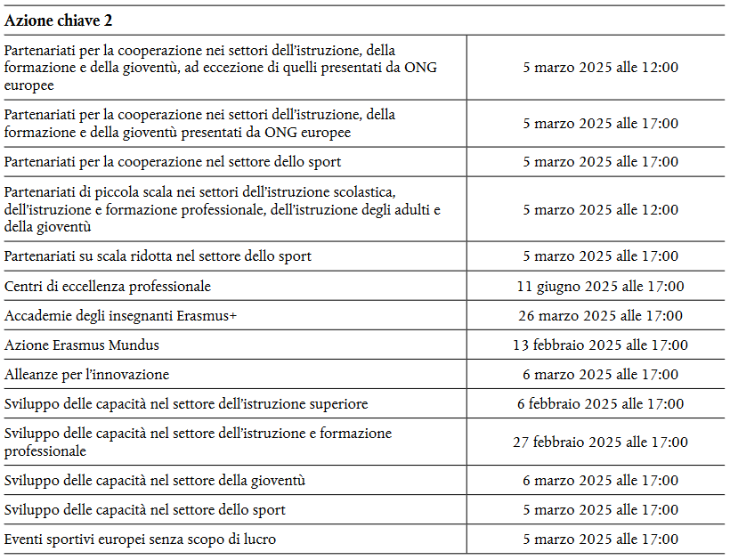 Erasmus+ supporta una vasta gamma di modelli di cooperazione che coinvolgono non solo le scuole e l’università. Sempre più interessante è lo spazio riconosciuto alle organizzazioni della società civile e alle ONG nei percorsi di cooperazione e innovazione che possono essere finanziati dalle diverse azioni chiave del programma. Anche nel 2025, Erasmus+ continuerà a sostenere il sistema educativo ucraino, gli studenti e gli educatori in Ucraina o che sono rifugiati negli altri paesi dell’Unione.