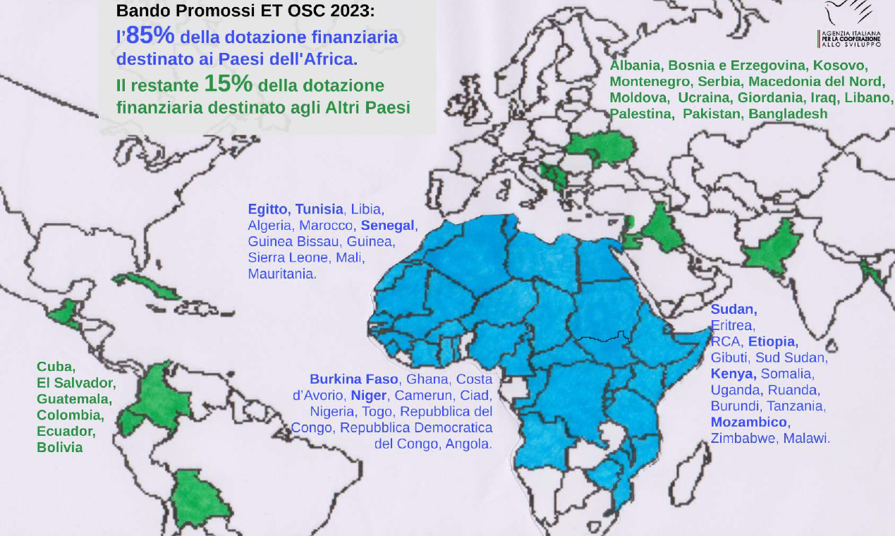 Un caso evidente è il bando da 180 milioni per la concessione di contributi a iniziative promosse da Enti Territoriali e dalle Organizzazioni della Società Civile lanciato recentemente dall’AICS e dichiaratamente etichettato come primo atto del Piano Mattei. Il bando ne recepisce le priorità tematiche (in particolare la formazione professionale e l'energia) e il focus geografico sull’Africa (85% dei fondi), modificando de facto la lista dei paesi prioritari della Cooperazione Italiana.