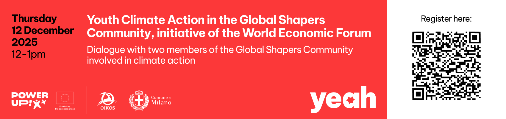 Il prossimo webinar è in programma il 12 dicembre, dalle 17:00 alle 18:00 . Ospiterà due testimonianze dei giovani della Global Shapers Community, iniziativa del World Economic Forum che conta oltre 10.000 giovani in più di 500 hub in tutto il mondo. Gli hub sviluppano progetti locali su temi importanti per le loro comunità, promuovendo leadership giovanile e coinvolgimento nelle decisioni.