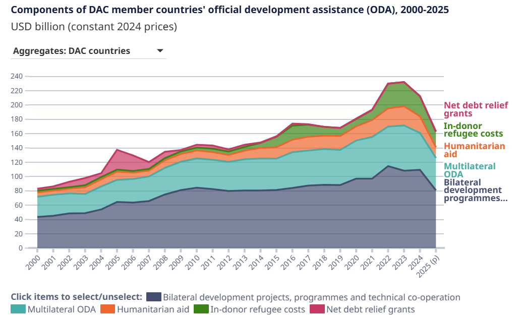 Le proiezioni OCSE non lasciano spazio all'ottimismo: per il 2026 si prevede un ulteriore calo del 5,8% degli aiuti dei Paesi DAC. E questa stima non incorpora ancora gli effetti dell'escalation mediorientale né i possibili ulteriori tagli dell'amministrazione Trump ai pochi programmi sopravvissuti allo smantellamento dell'USAID.